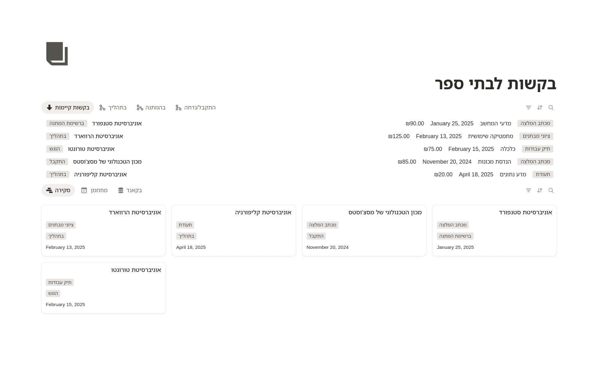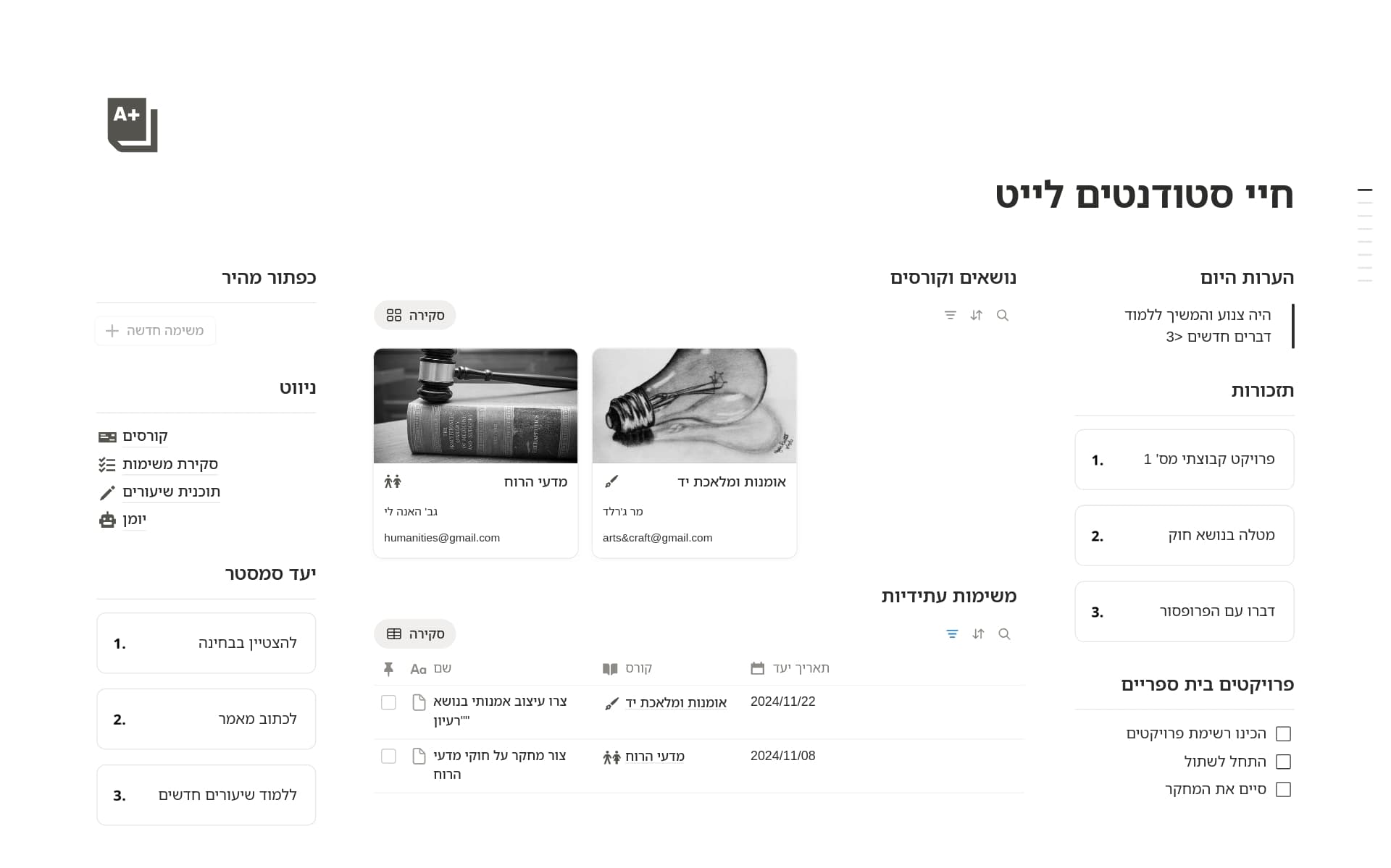 לוחות בקרה לסטודנטים